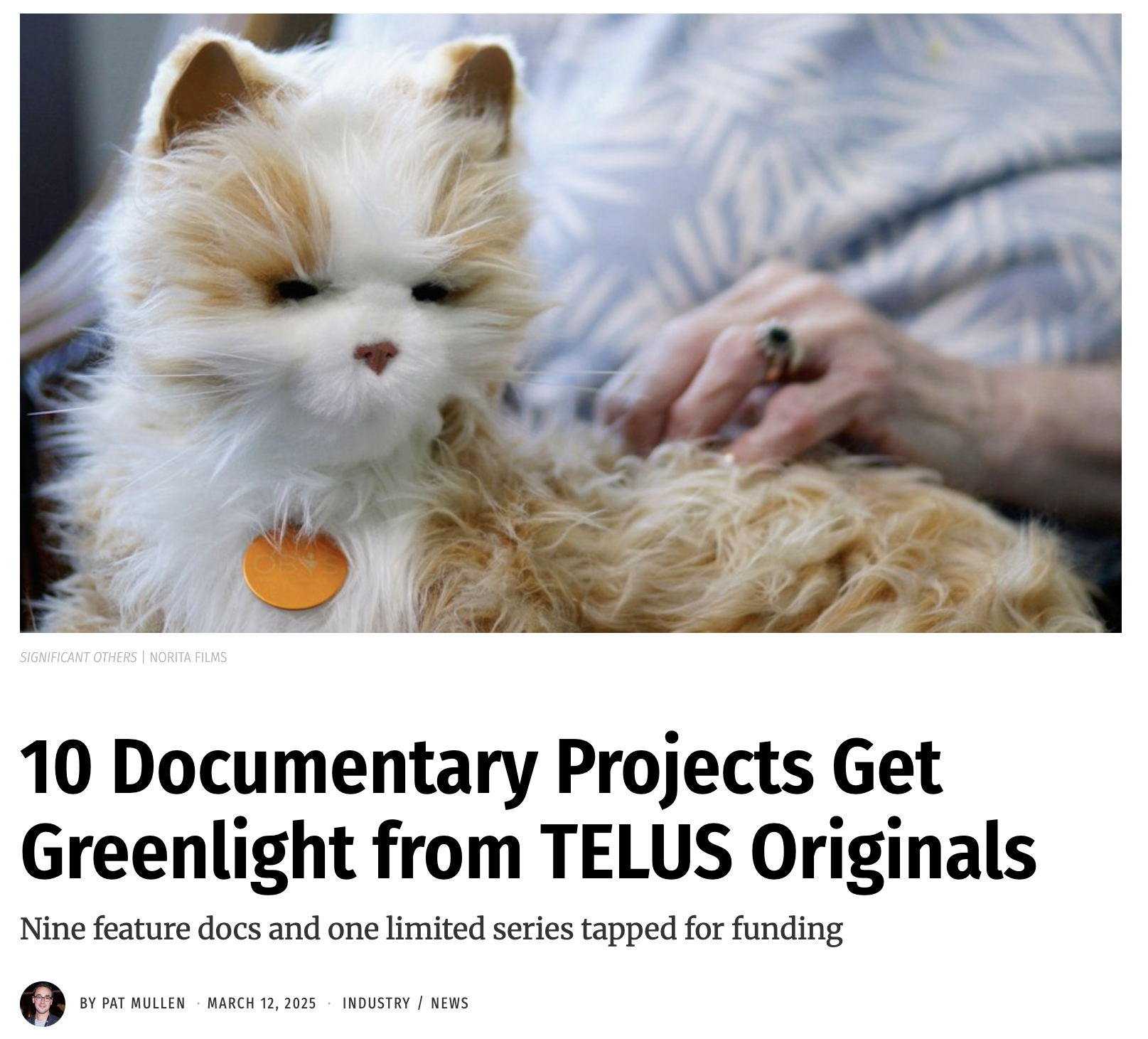 I’m happy to share that Significant Others has received funding from TELUS Originals as part of their 2025/2026 slate! The project was highlighted in a POV Magazine article with our still as a cover image and my quote: